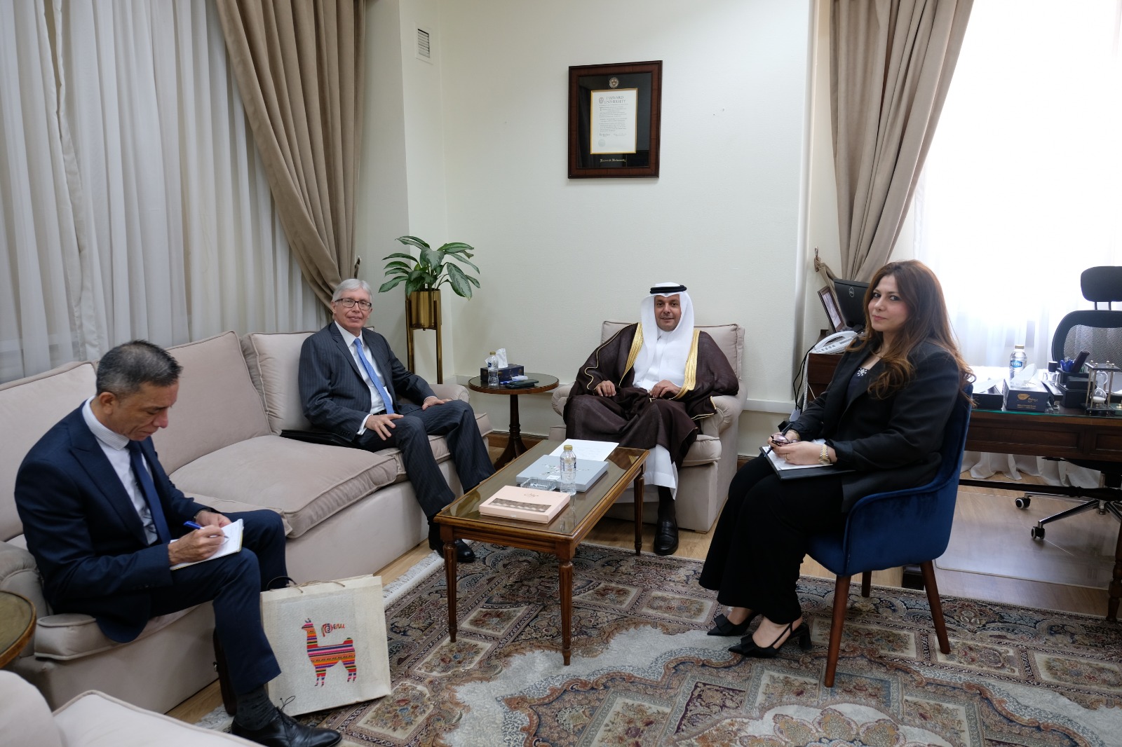 استقبل سعادة السفير د.خالد بن محمد منزلاوي الأمين العام المساعد رئيس قطاع الشؤون السياسية الدولية سعادة السفير/ ميغيل لويس مارتين أليمان أورتياغا، سفير جمهورية بيرو بالقاهرة والوفد المرافق له يوم الاثنين الموافق 6/10/2025 بمقر الأمانة العامة.
