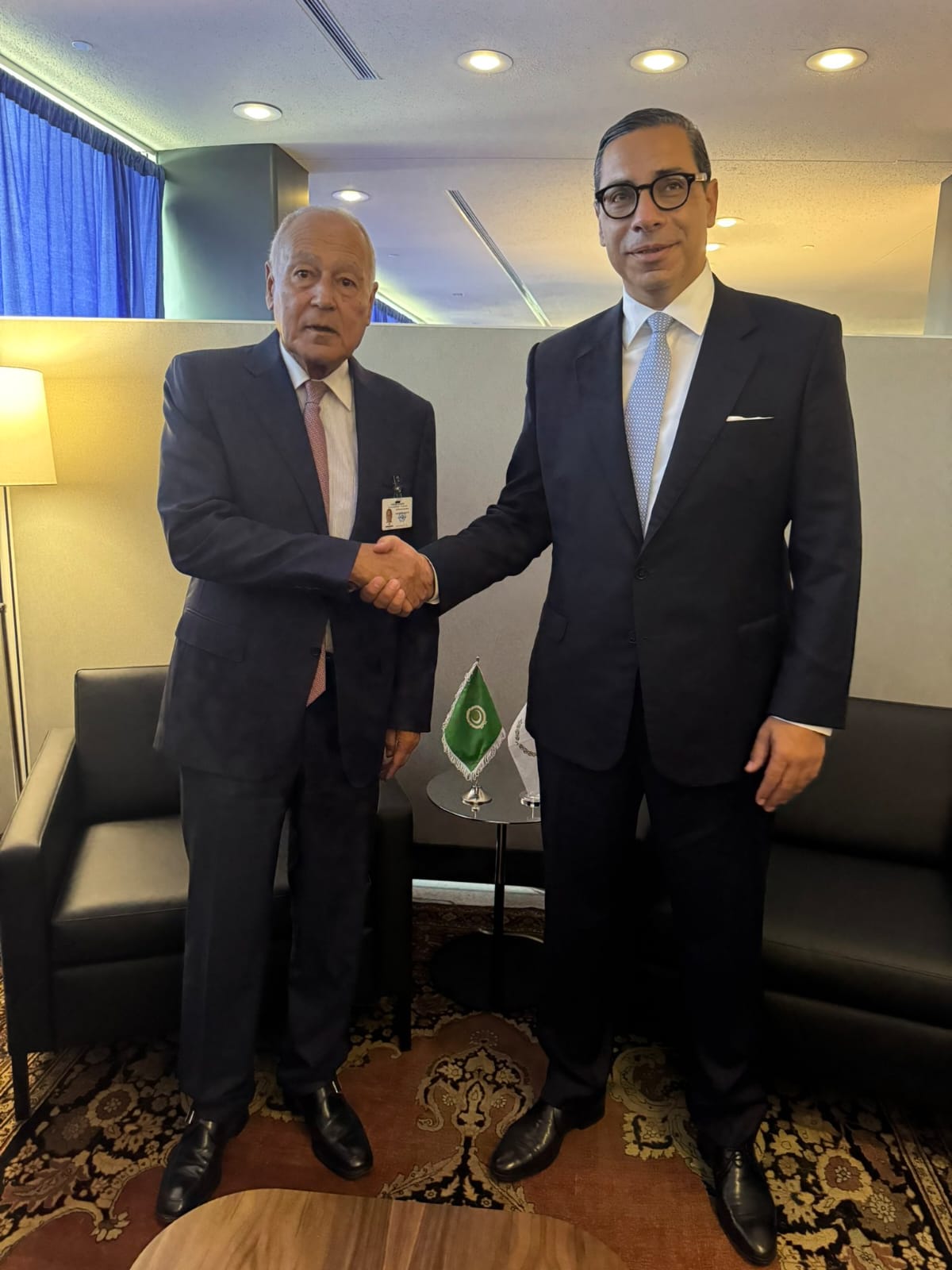 الأمين العام للجامعة العربية يلتقي رئيس المجلس الرئاسي الليبي على هامش الدورة (80)للجمعية العامة للأمم المتحدة
